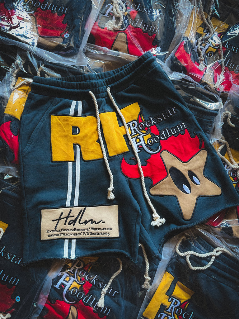 CHARCOAL PSYCHO STARZ PATCHWORK SHORTS