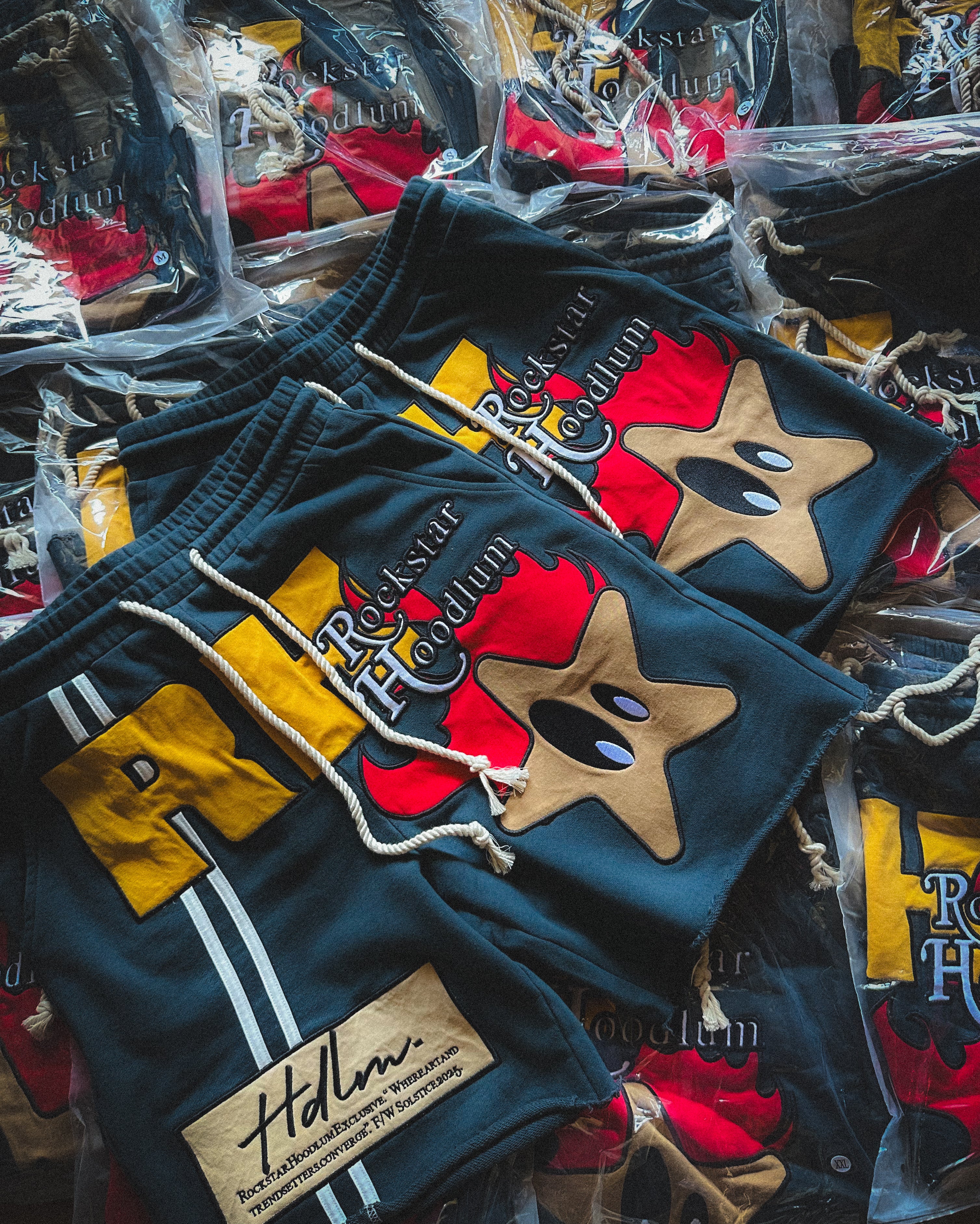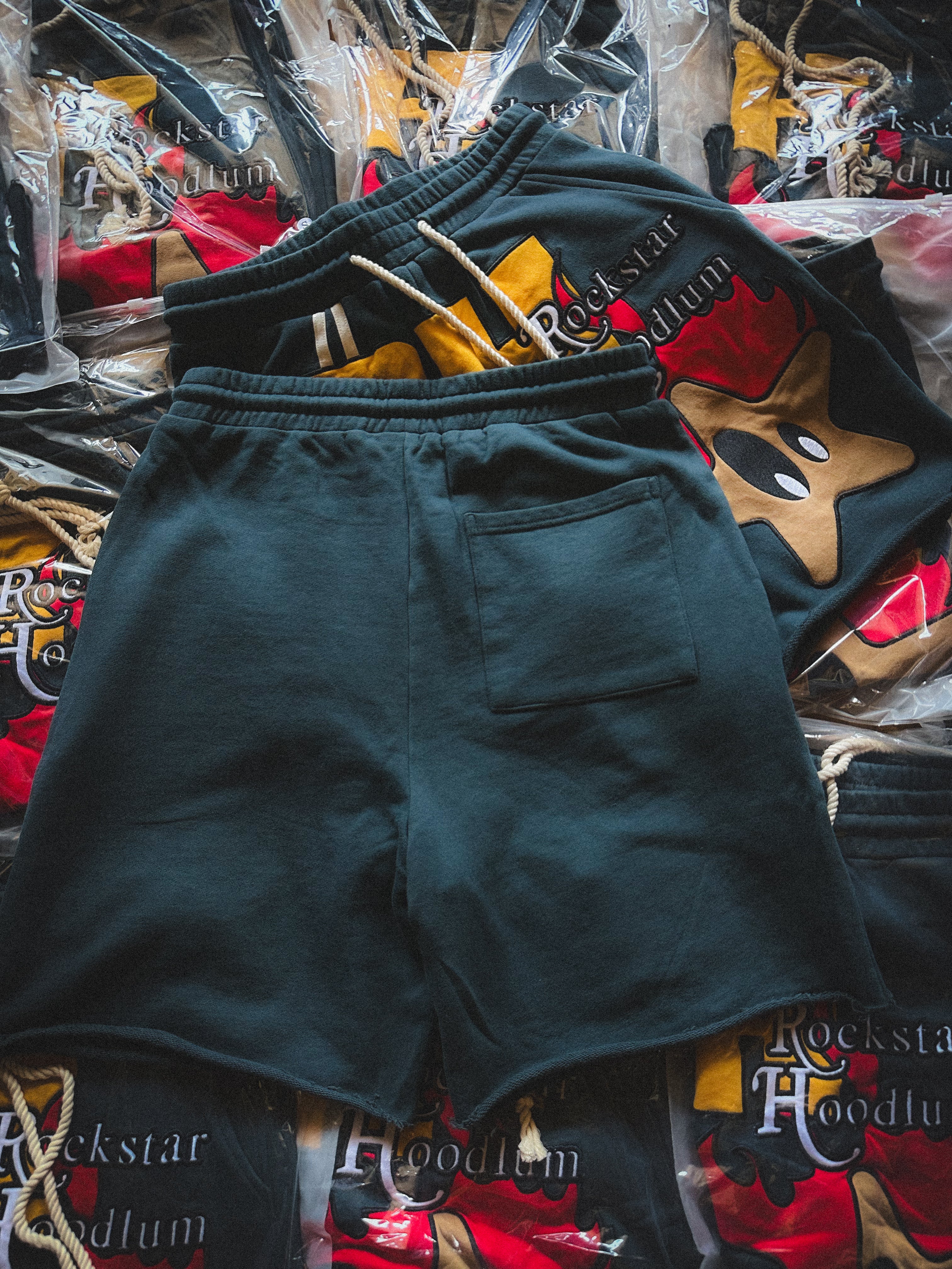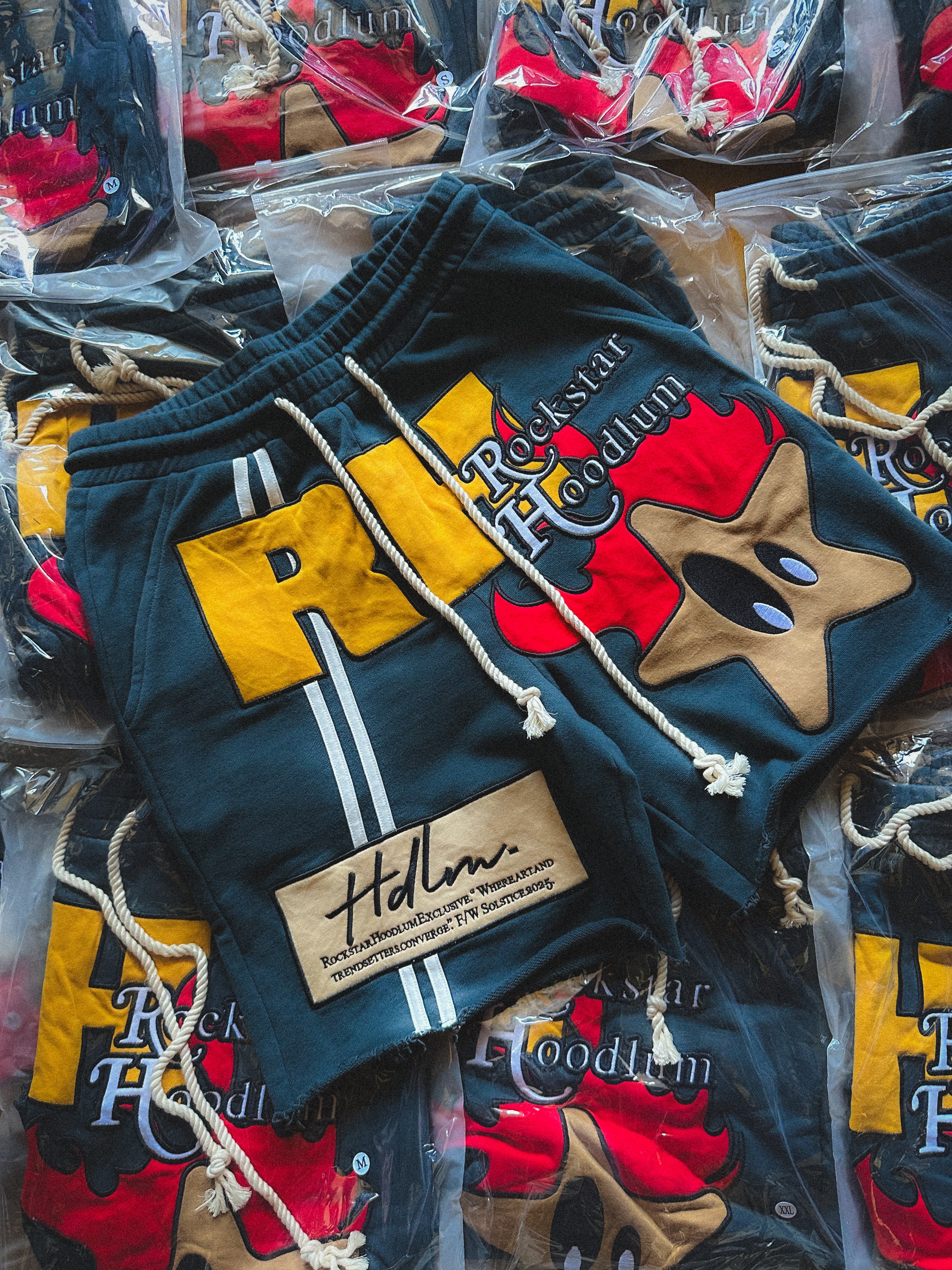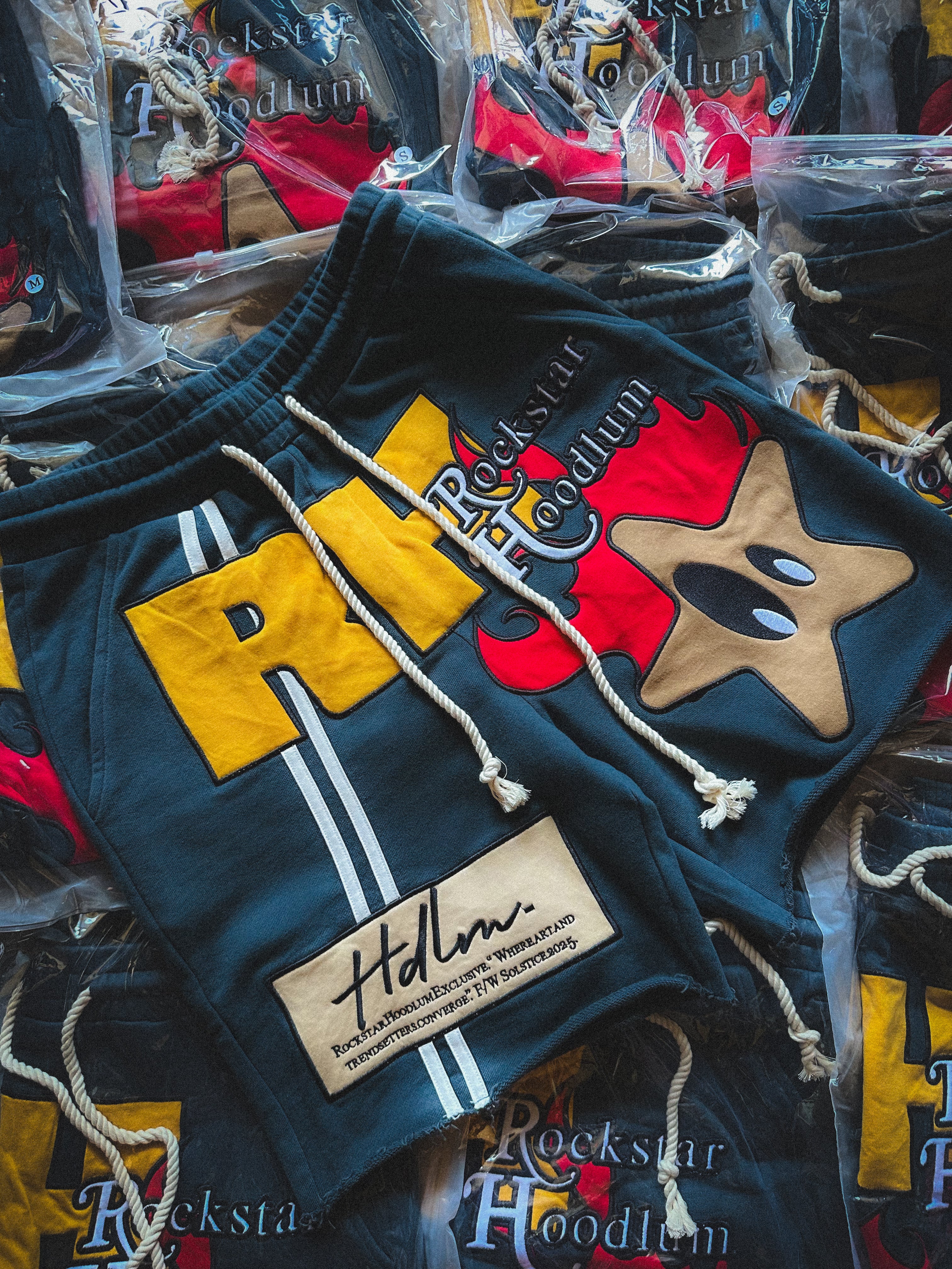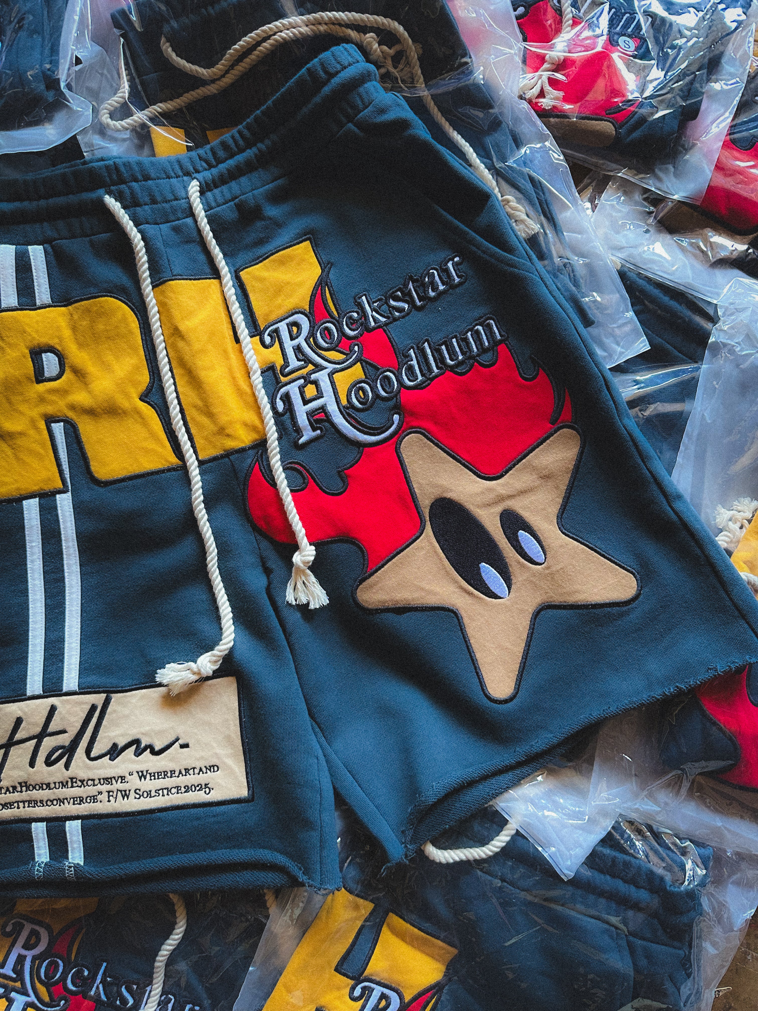 CHARCOAL PSYCHO STARZ PATCHWORK SHORTS